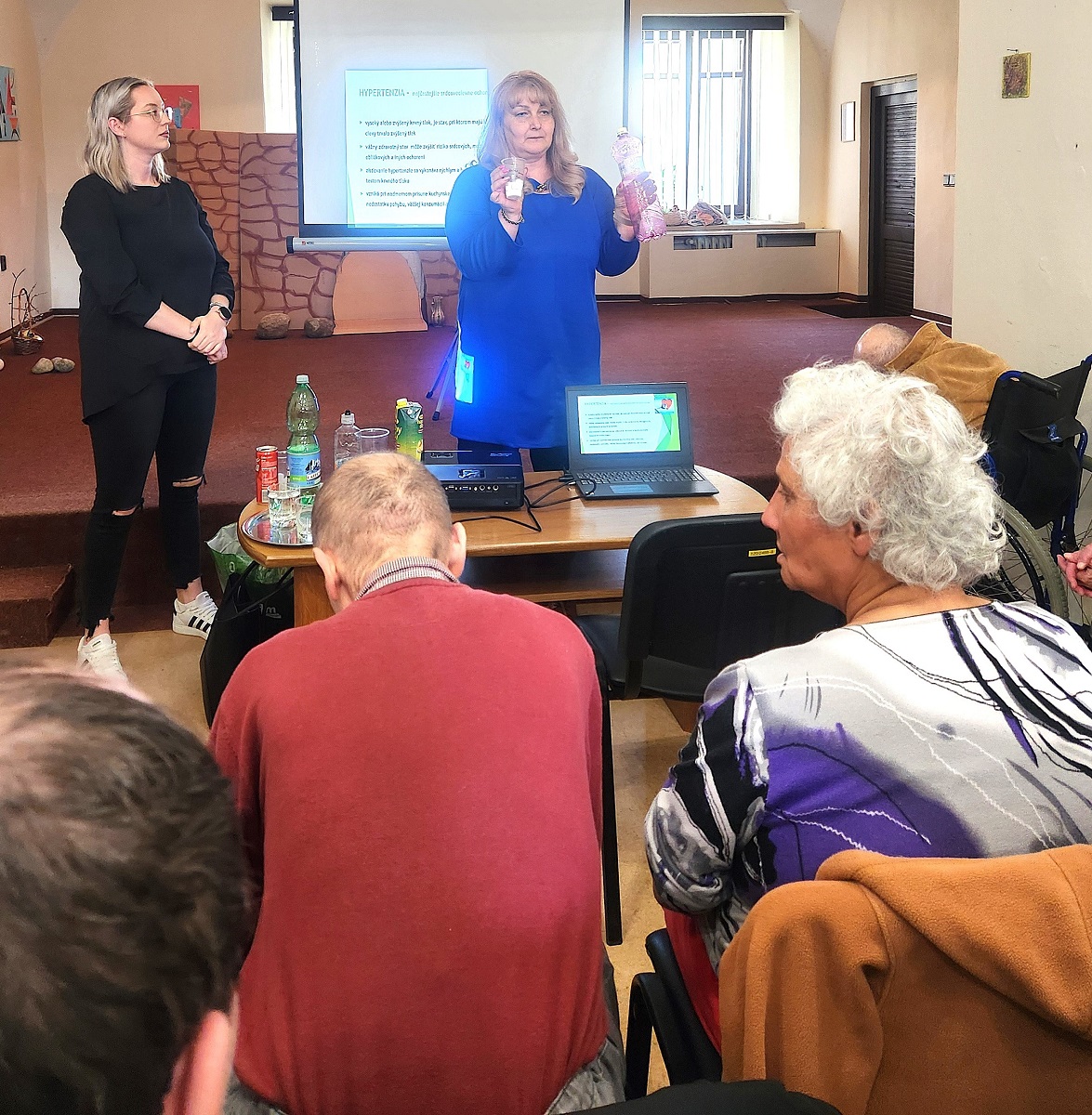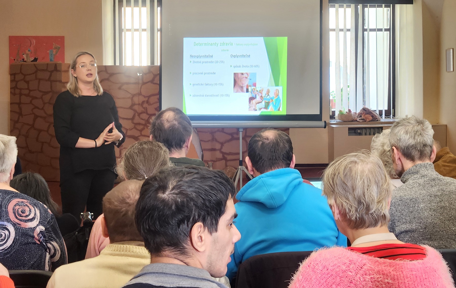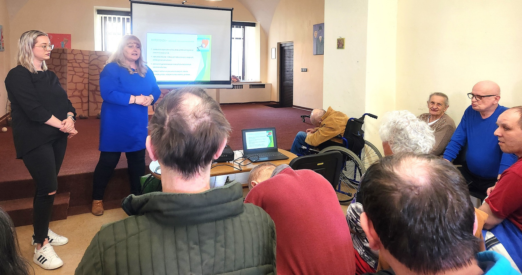 Dopoludnia 14. apríla 2026 prebehlo vzdelávanie prijímateľov sociálnej služby na tému zdravia a zdravého stravovania pod záštitou hlavnej sestry z nášho zariadenia, napĺňajúc jeden zo štandardov kvality. Témy prezentovali zamestnankyne Regionálneho úradu verejného zdravotníctva v Poprade – vedúca Oddelenia podpory zdravia a výchovy k zdraviu pani Augustinová a pani Baranová. Klientov oboznámili o faktoroch, ktoré vplývajú na naše zdravie, aj o tých, ktoré nemôžeme sami ovplyvniť, takisto aj o zdravých spôsoboch života, škodlivosti fajčenia a dôsledkoch konzumácie sladkých jedál a nápojov. Počas prezentácie klienti kládli zaujímavé otázky a hovorili aj o svojich skúsenostiach s fajčením. Srdečne ďakujeme za veľmi poučné a potrebné vzdelávanie našich prijímateľov.